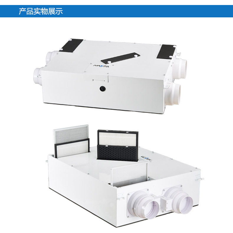 高能效比:采用水平進排風,具非常高的能效比,可回收70%以上能量 高效過濾:采用歐洲標準H13級過濾,多重過濾;PM2.5過濾99%以上 雙向流新風機:訂機采用雙核動力設計,動力強,體積小;采用直流無刷電機,低噪音,低能耗